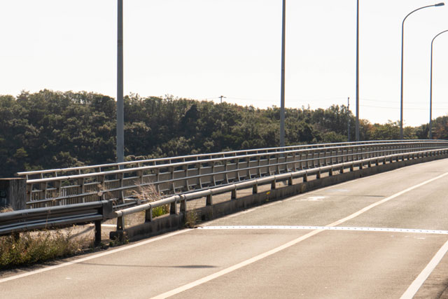 そこに車を停めて、反対側からも橋を撮影してみました。やはり展望台側からの風景の方がゲーム画面に近いですね。