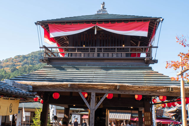 伊勢神宮の内宮近くにある「おかげ横丁」の中心にある「太鼓櫓」です。