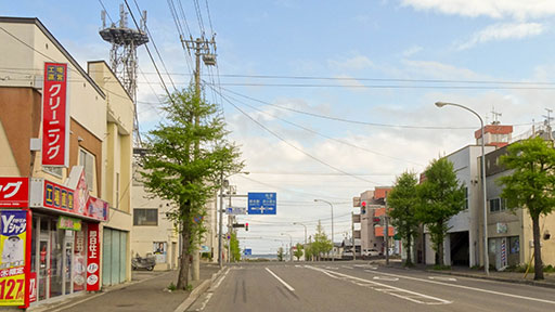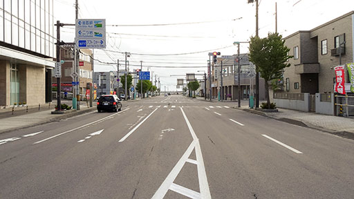 1枚目が「おーろら号」乗り場の手前から桂台駅に向かう途中の「南4東4」の交差点、2枚目が網走バスターミナルの少し先の「南2東1」の交差点です。