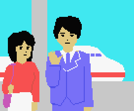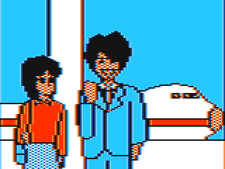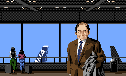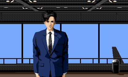PC-8801版のゲーム画面で、シュンの後方に空港ビルが写っていますが、正面(駐車場側)ではなく駐機場側からの景色に見えることに今頃気が付きました。