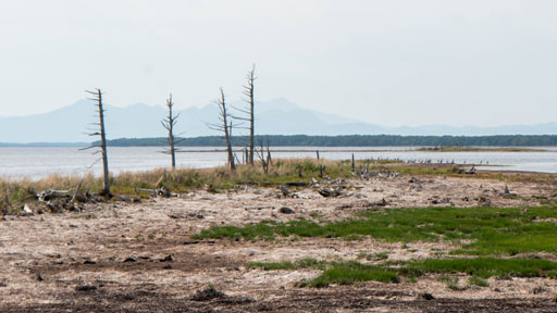 「木の墓場みたいな所」というぐらいなので、ひょっとして樹海のような薄暗い場所かと思っていたのですが、実際は半島の少し出っ張った部分にある湿地でした。