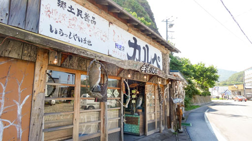 看板には「郷土民芸品」「観光みやげ」「民芸店」という文字が残っていますが、中に入ると鹿の角やヒグマの爪が並んでいて、おみやげらしき物は置いてありませんでした。