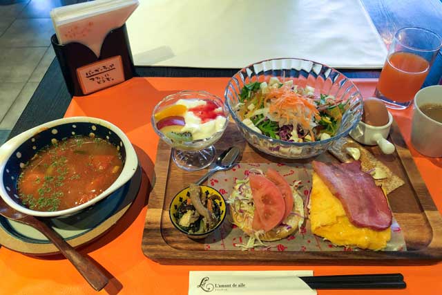 ホテル1Fのレストラン「ラマンデール」でいただくことの出来る、大人気のマフィン朝食です。