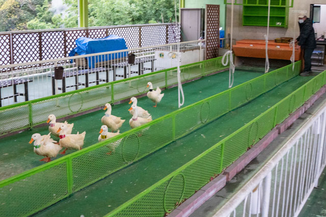 こちらがラクテンチ名物「あひるの競争」です。1レース150円です。