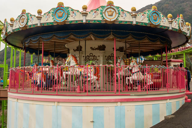 写真のメリーゴーランドの他にも、ジェットコースターやサイクルモノレール等があります。