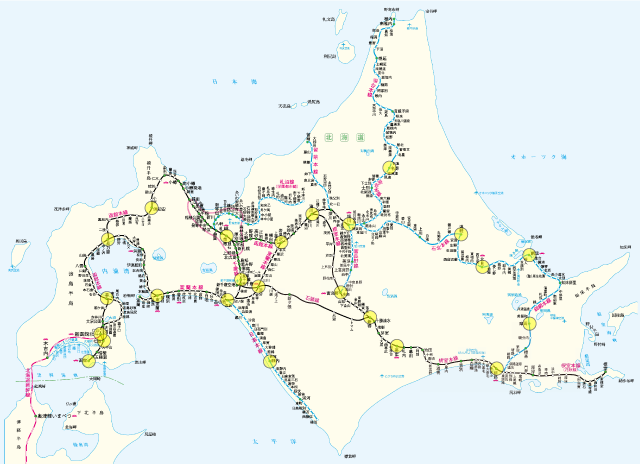 こちらは、「北の40記念入場券」を発売している駅と、購入済の駅(黄色い円を塗りつぶす)が一目で分かるようにと、自分用に作ったものです。